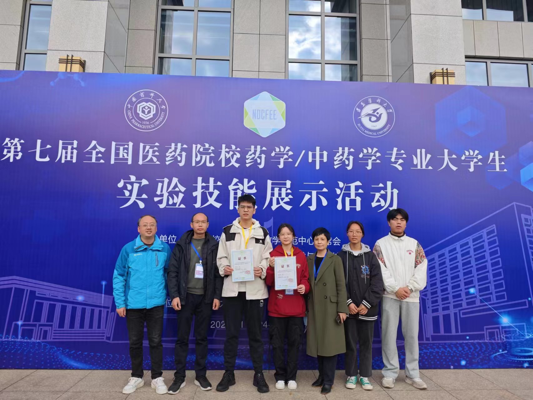 本次活动由高等公司国家级实验教学示范中心联席会、全国药学类院校老员工专业技术与实验技能竞赛组委会、教育部“药学课程”虚拟教研室、中国药科大学主办,遵义医科大学beats365承办。beats365副经理易岚带队参赛,药物化学教研室主任杨泽华、药理教研室孙少卫以及22级药学专业的赵泽艳、危佳豪到现场观摩。
