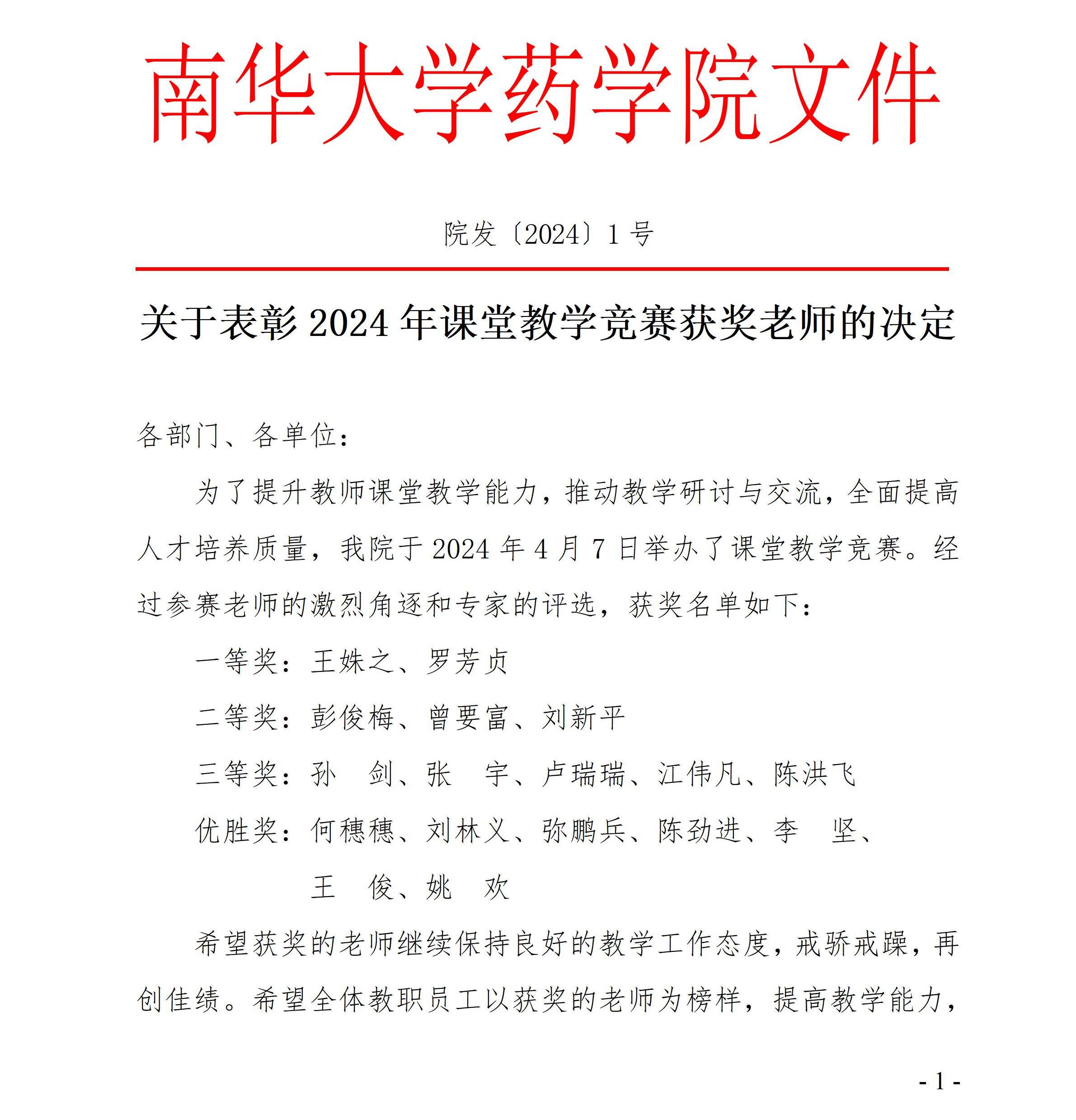 beats365表彰2024年课堂教学竞赛获奖老师的决定