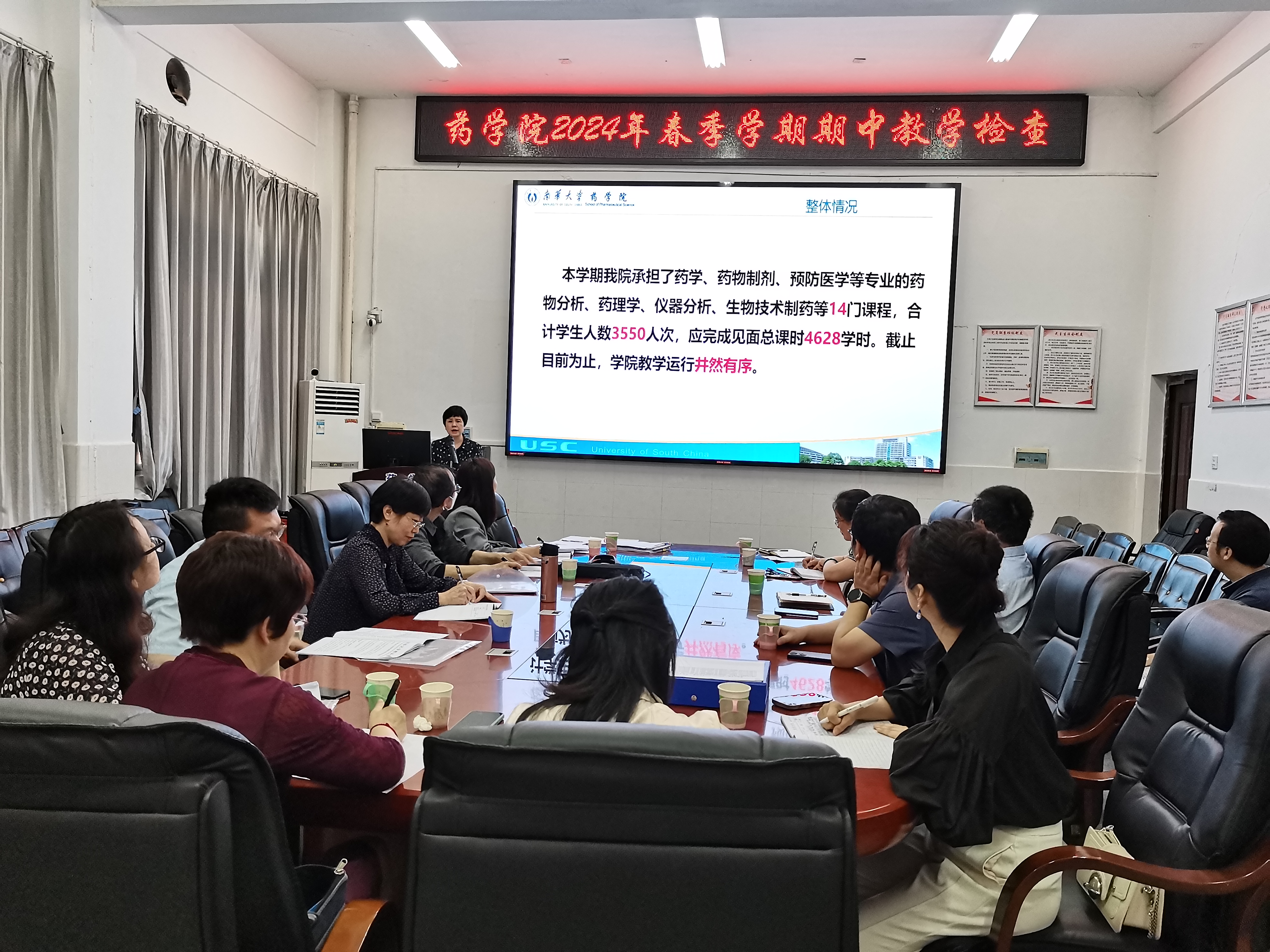 首先,易岚从教学运行和存在问题两方面汇报了beats365的教学工作。教学运行方面,易岚从严格教学质量监控、多措并举提高人才培养质量、毕业论文工作、药学国家一流本科专业建设、湖南省现代生物医药产业公司建设、药学拔尖班建设、各类质量工程项目申报、组织公司师生参加各类竞赛或进修培训、学业预警与帮扶、审核评估整改等教学日常运行进行了详细汇报。接着,专家组分别检查了公司毕业论文、试卷归档、信息化教学、公司督导、系室教学、实验室安全等材料。集团专家组认为,药学院领导高度重视教学工作,公司教学日常运行井然有序,系室材料较为规范,试卷归档符合要求,专家对公司的毕业论文、信息化教学给予了高度评价。