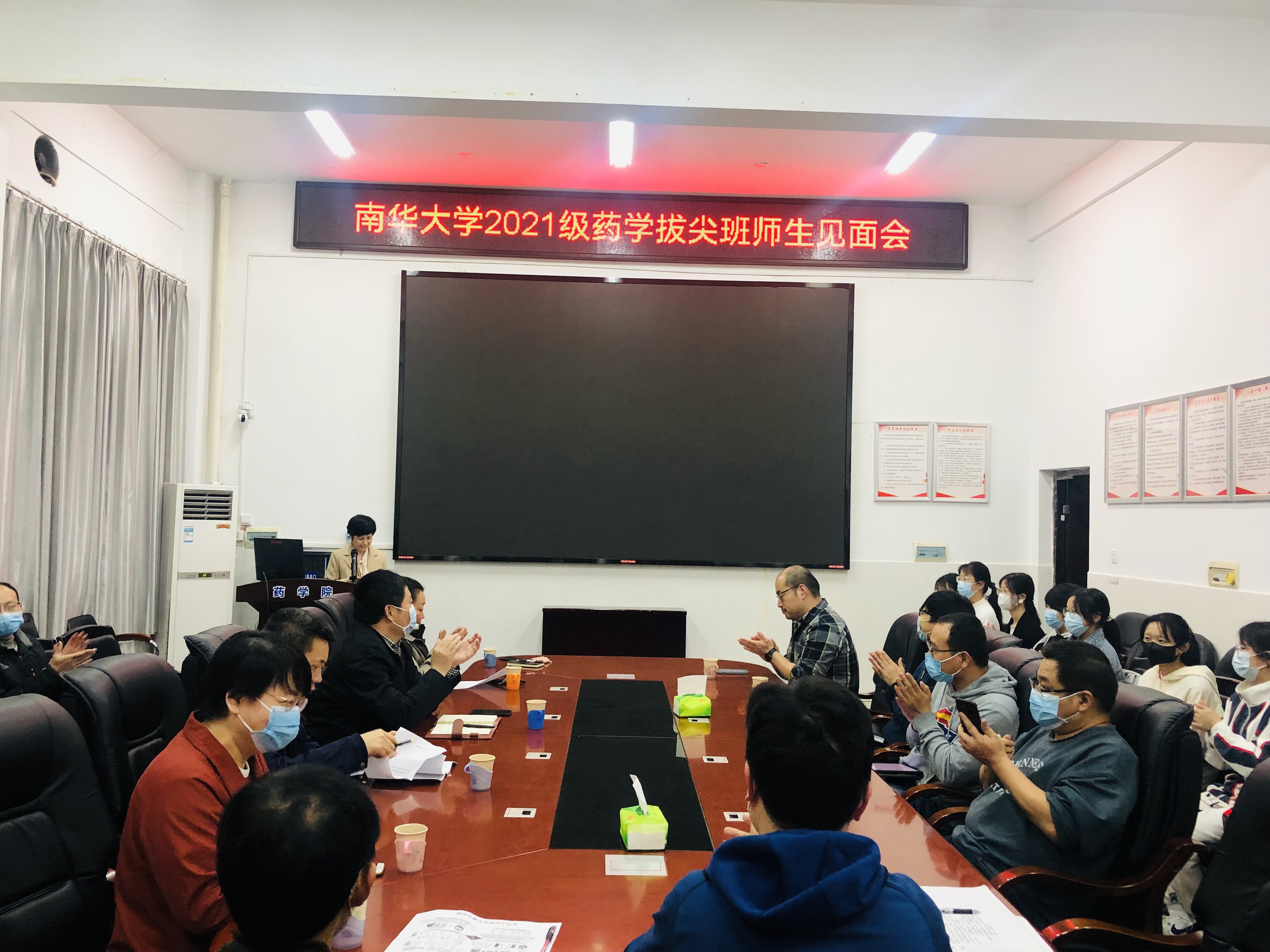 4月15日下午,beats365在新二教B栋101会议室举行了2021级基础医学(药学)拔尖班师生见面会。药公司经理喻翠云教授、党委书记袁中华教授、副经理易岚教授、副经理王力立教授、高层次人才魏华教授、陈渝萍教授等拔尖班导师,班主任、教务办老师以及拔尖班全体员工参加了会议。教务部戴剑勇副部长应邀出席了会议,会议由易岚副经理主持。