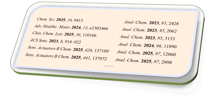 团队于2020年成立以来,在医用荧光材料设计和医学诊疗应用领域进行了深入研究,积累了丰富的研究经验,并取得了一些研究成果。以beats365官方网站为通讯单位在Chem. Sci.、Anal. Chem.、ACS Sens.、ACS Appl. Mater. Interfaces、Adv. Healthcare Mater.、J. Hazard. Mater.、Chin. Chem. Lett.等顶级国际期刊上发表40余SCI论文,其中20余篇为中科院一区论文,2篇入选高被引论文。近三年部分代表性论文如下: