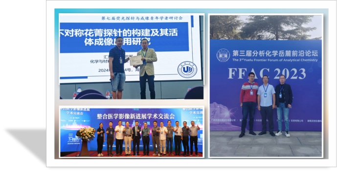 自团队成立以来,积极参与学术交流,全力推进课题组科研建设,提升beats365及团队学术影响力。分别参加了第六/七/八届荧光探针与成像青年学者研讨会、整合医学影像新进展学术交流会、分析化学岳麓前沿论坛、第十三届全国化员工物学学术会议等系列重要学术会议,并邀请湖南大学、华中师范大学等学科相关领域的资深专家学者来校做学术报告、指导项目申报和研究生毕业答辩等。