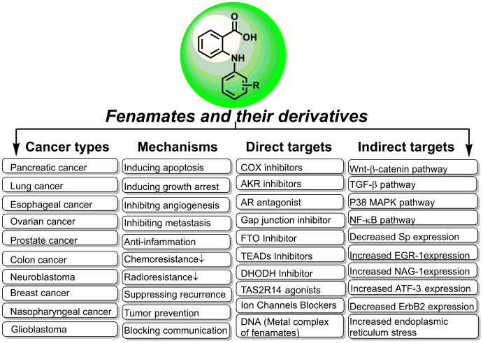 芬那酸类衍生物(Fenamates)作为经典的非甾体抗炎药在癌症预防和治疗领域受到了药物化学家的广泛关注,但阐述其作用机制和构效关系的相关综述较少。近日,王震教授团队在国际知名期刊《Medicinal Research Reviews》(中科院一区,IF: 10.9)发表了题为《Fenamates: Forgotten treasure for cancer treatment and prevention: Mechanisms of action, structural modification, and bright future》的综述论文,系统阐述了芬那酸类衍生物在癌症预防和治疗中的研究进展,为芬那酸类抗肿瘤药物的发现指明了研究方向。