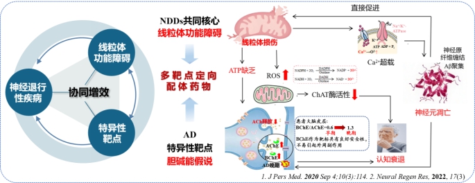 神经退行性疾病(Neurodegenerativediseases,NDDs)是神经元损伤导致功能障碍的一类疾病。神经元细胞依赖线粒体提供大量能量以维持信息传递等生理功能。即使轻微的线粒体功能障碍,也会引发氧化应激、能量失衡和病理蛋白聚集等系列问题,导致神经元损伤并引发功能障碍,最终加快NDDs的发展。因此,针对线粒体功能障碍这一共同核心病理机制进行干预,已成为预防和缓解神经退行性疾病进展的关键切入点。