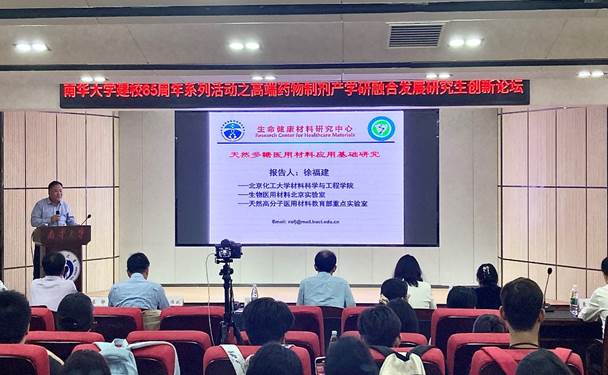 徐福建教授的讲座分为三个部分展开:1.引入核算递送系统:探讨科学问题;2.提出天然多糖基材料:开拓新思路;3.多糖敷料制品:从“书架”走向“货架”。