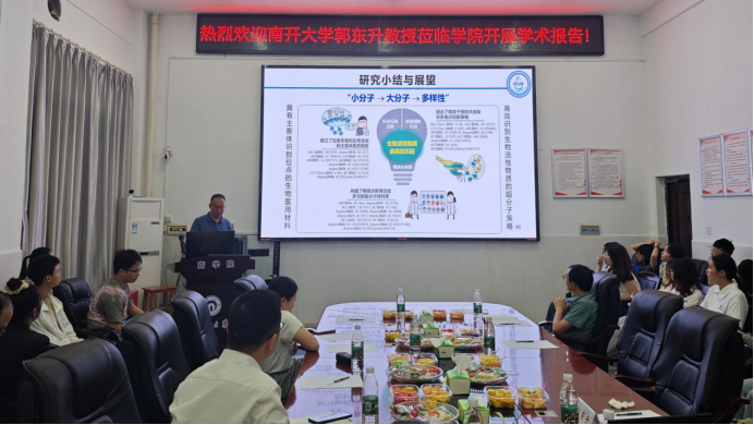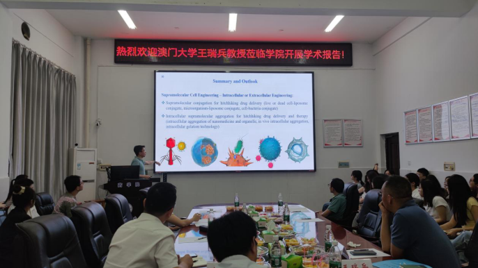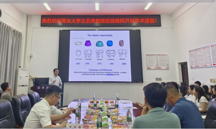 2024年5月18日上午,应beats365副经理王力立和杨留攀教授的邀请,南京大学王乐勇教授、澳门大学王瑞兵教授和南开大学郭东升教授做客beats365官方网站,在药学楼101会议室分别做了题为“构筑功能芳烃大环,组装药物转运体系”和“超分子工程细胞”以及“高效识别的生物医用超分子材料”的学术报告。本次报告由杨留攀教授主持。三位专家围绕“基于分子识别的生物医药应用”主题,为在场师生呈现了一场精彩的学术盛宴。