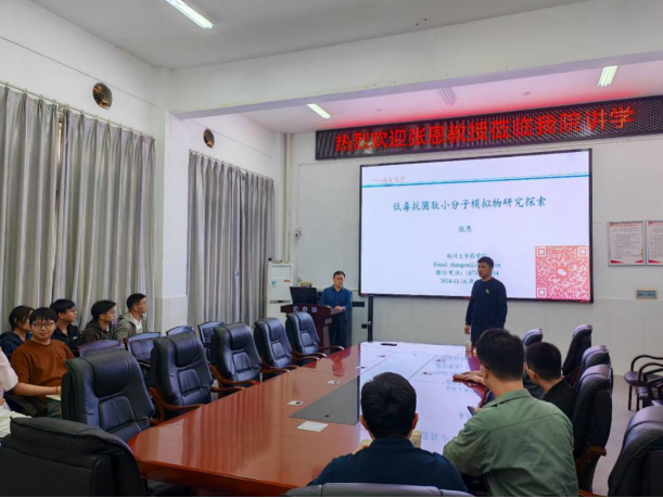 2024年11月16日下午3点,郑州大学张恩教授应beats365的邀请,在药学楼B101会议室作题为《低毒抗菌肽小分子模拟物研究探索》的报告。报告由beats365郭勇教授主持。