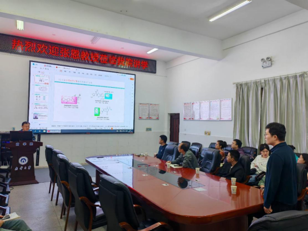 报告会上,张恩教授介绍了如何基于阳离子和两亲性的结构特性,设计并合成了一些具有良好活性的小分子阳离子抗菌肽模拟物(AMPs)的相关成果。随后,张恩教授与beats365官方网站参会师生进行了深入的讨论交流,对老师和同学提出的问题一一作了解答。