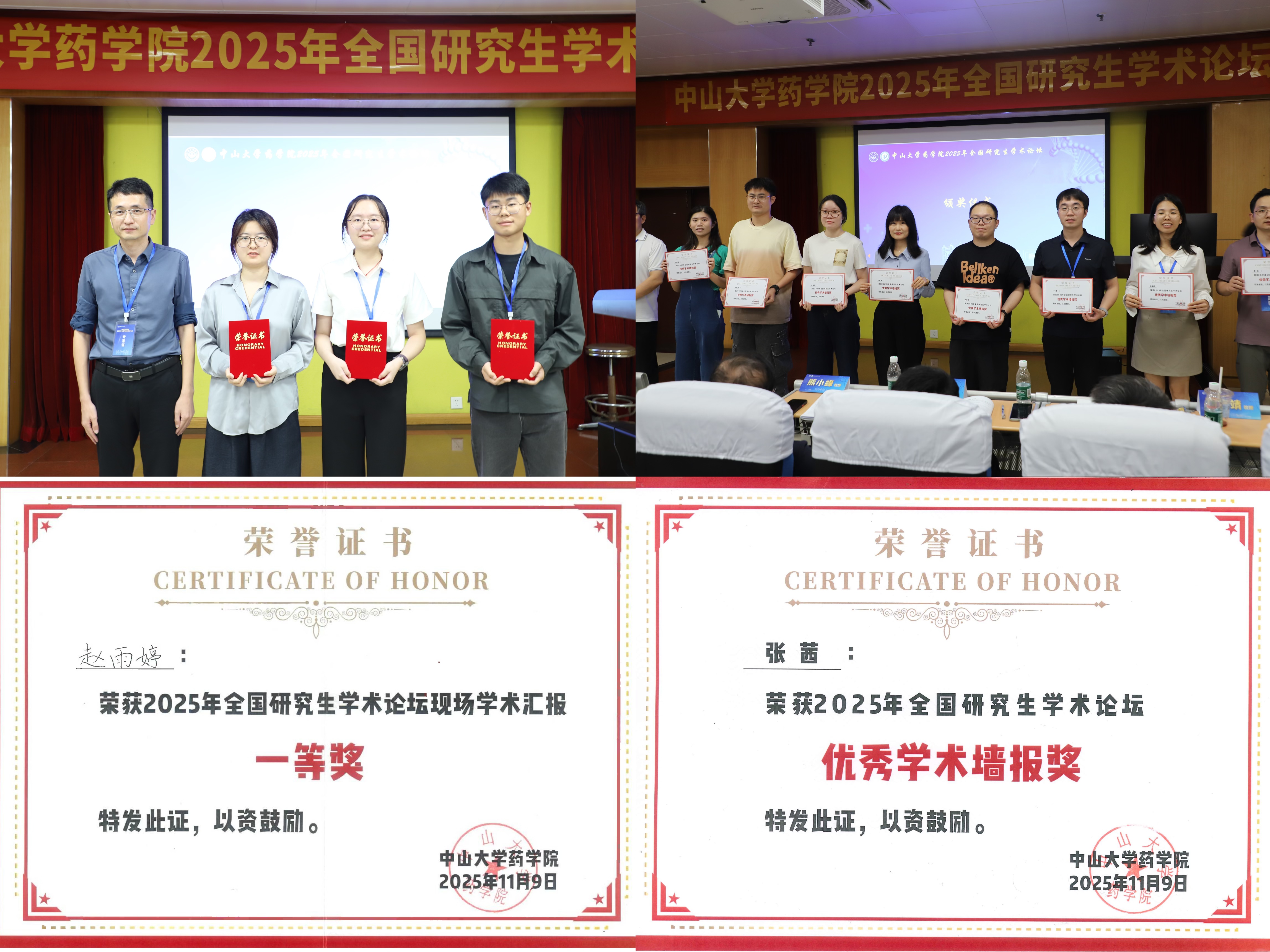 此外,在2025年6月27日至29日举办的湖南省药学会第十六次会员代表大会暨第七届湖南药学大会的优秀论文竞赛单元中,王震教授指导的硕士研究生吴坤和安志刚同样表现突出,双双荣获三等奖,进一步展现了团队研究生扎实的专业素养和科研能力。