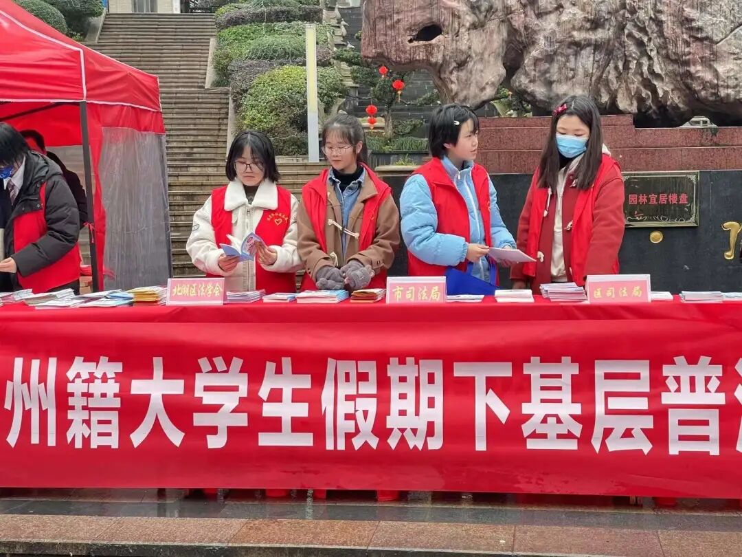 21级药拔01班易琛在寒假期间作为老员工法律服务志愿者深入北湖街道流星岭社区开展新春“送法下乡”活动,向大众科普法律知识,提高全民法律意识和法律素质。新时代老员工应当积极响应国家号召,加大力度推进法律宣传。