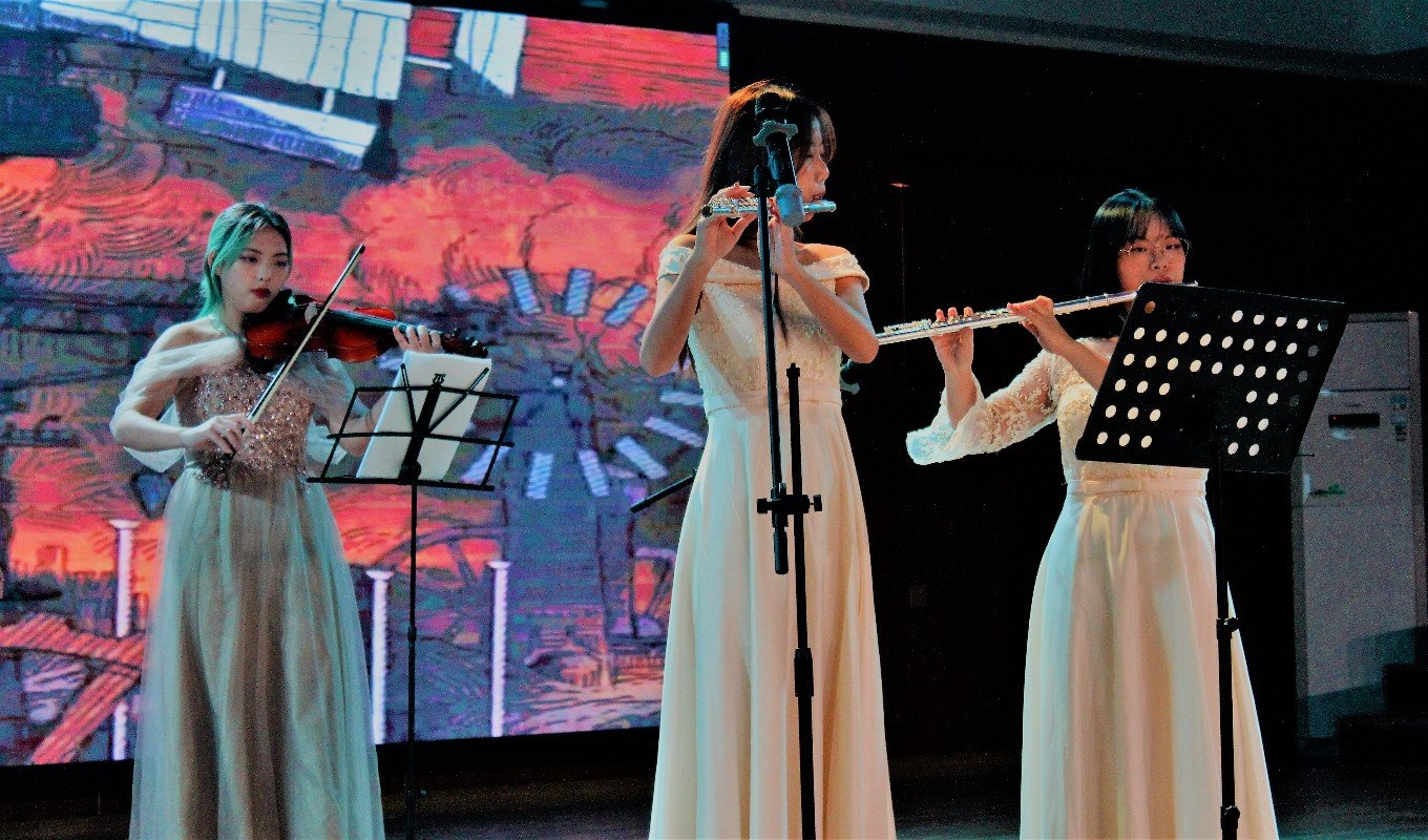 比赛正式开始前,由语言文学公司同学助力表演开场书简舞,手持书简,心旌摇荡,不尽远古之风。接着,主持人宣读比赛规则。比赛正式开始,选手们在舞台上舞动青春、张扬个性,用动感和活力,展现时代的气息。21级药拔01班的乐器合奏《天空之城》,纯净而愉悦的童谣曲风,却犹如在云端之上那般遥远;2103班麦迪乃·牙森的舞蹈《阿拉木汗》充满异域风情,热情的姑娘伴着婀娜的舞蹈引人入胜;2105班石芸芸的独唱《giant》传达紧握黑暗中的希望,驱散迷茫;2104班向平安与2105班宋志浩的独唱加吉他弹唱《下雨了》,缓缓的歌声带我们走进一场雨,每一滴雨都仿佛一个故事;2102班和2101班带来的合唱《逆光》,展现了不惧困境,逆光生长,向阳而生的希望。