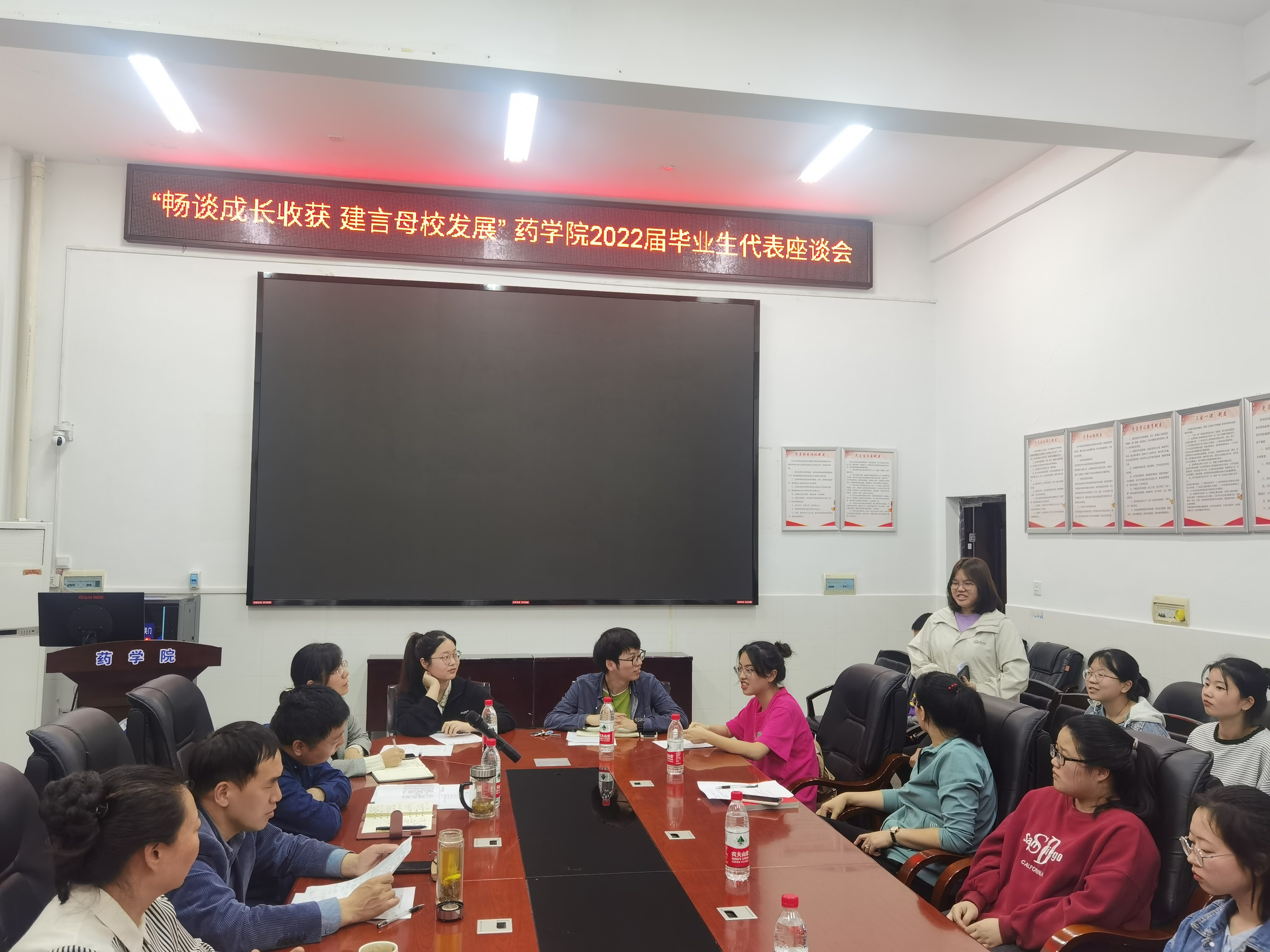 5月20日下午,beats365在药学楼101会议室召开以2022届本科毕业生代表座谈会,beats365官方网站党委委员、副董事长雷小勇应邀出席并讲话,公司党委书记袁中华、经理喻翠云、党委副书记陈健平以及学工室全体辅导员、毕业班班主任代表、毕业生代表等近30人参加座谈会,座谈会由袁中华主持。