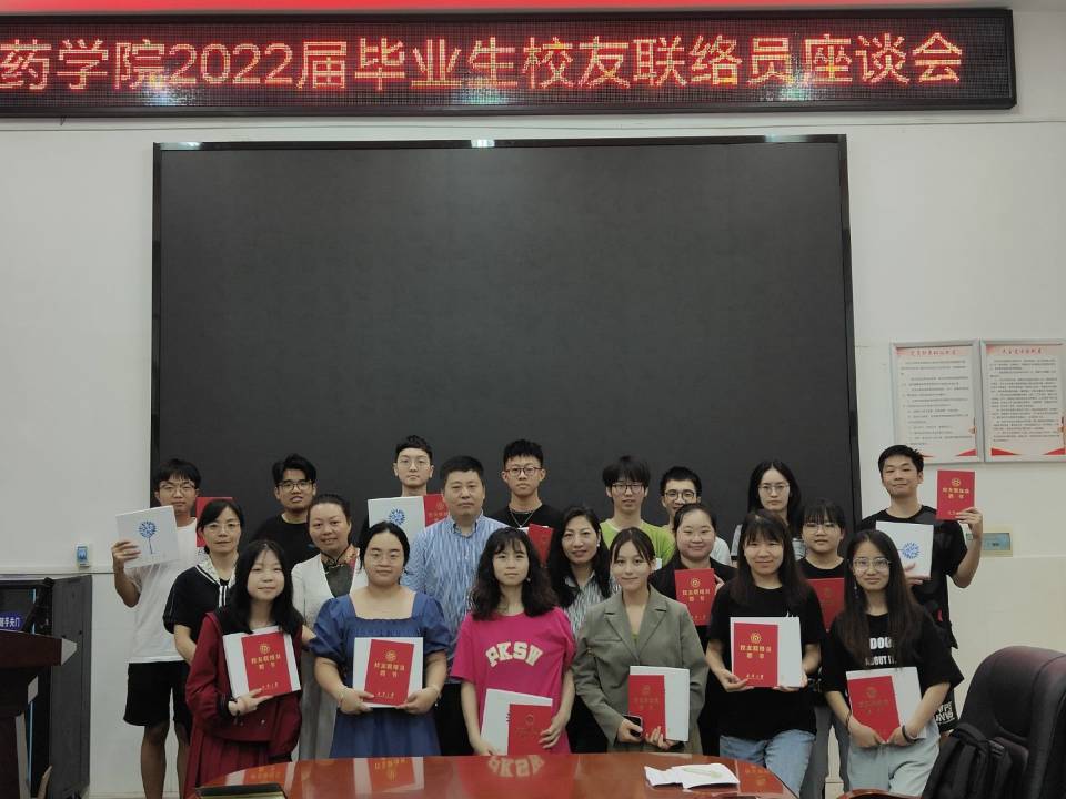 2022年6月1日上午,2022届毕业生员工联络员座谈会在药学楼101会议室召开。公司党委书记袁中华、经理喻翠云、公司党委副书记陈健平、院学工室主任单云丽以及2022届毕业生员工联络员参加了此次会议。座谈会由袁中华主持。
