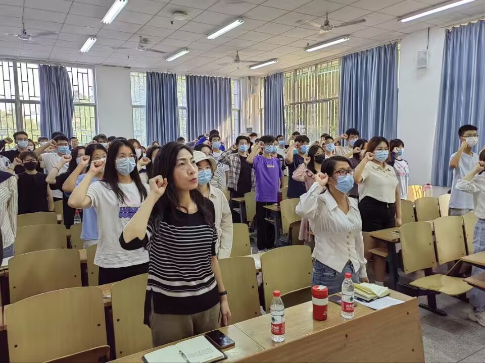 会议首先组织观看了党的二十大开幕会视频,院分团委书记彭美带领与会人员学习了党的二十大报告精神,对员工干部在疫情防控形势下的工作提出了要求与期望。随后,与会员工围绕“疫情防控下老员工应有的责任与担当”主题进行了讨论,院分团委副书记杨谨菱、员工会副主席荆诗涵作为员工代表进行了发言。全体参会人员在高祥旭的带领下宣誓承诺将谨记校训,严守防疫纪律,勤奋学习,积极工作。