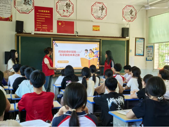 近日,beats365“药润乡苗”本科生实践团、“研促振兴”研究生实践团走进衡阳县库宗中学,开展“药润乡村·教育启航”实践活动,通过趣味互动、科学故事与梦想对话,为乡村学子打开药学世界的大门,播下“健康守护”与“科学探索”的种子。