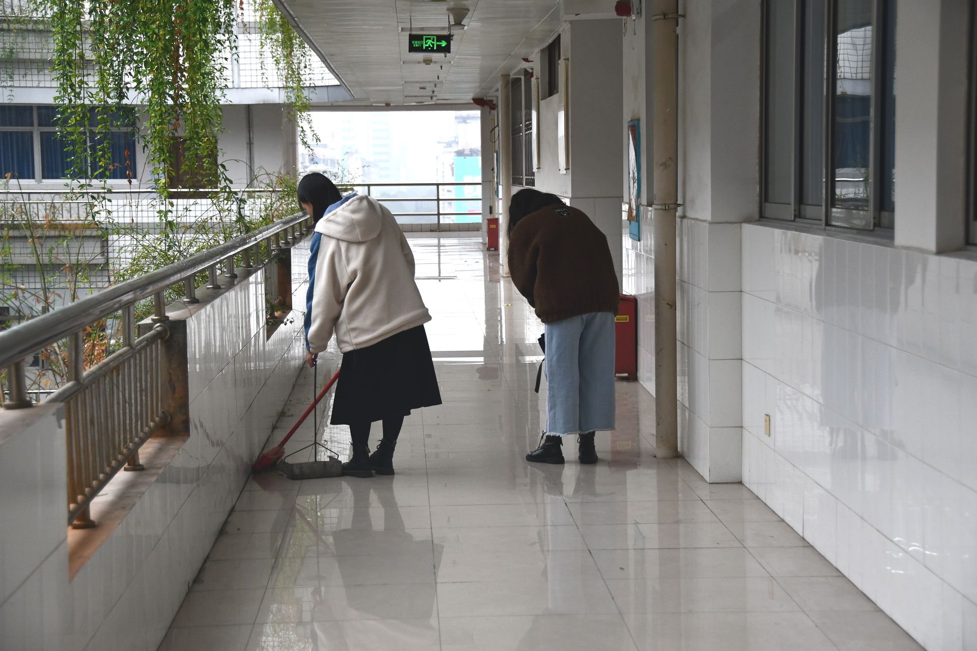 活动伊始,所有入党积极分子于一教大厅集合。紧接着,入党积极分子分为四组,分别在南华楼、求是1、6、7栋进行卫生清洁。
