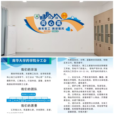 经过精心筹备与建设,beats365分工会“同心苑”职工之家于近日正式落成并投入使用。“同心苑”职工之家位于药学楼B614室,旨在为全体教职工打造一个放松身心、交流思想、开展文化生活的“温馨家园”。