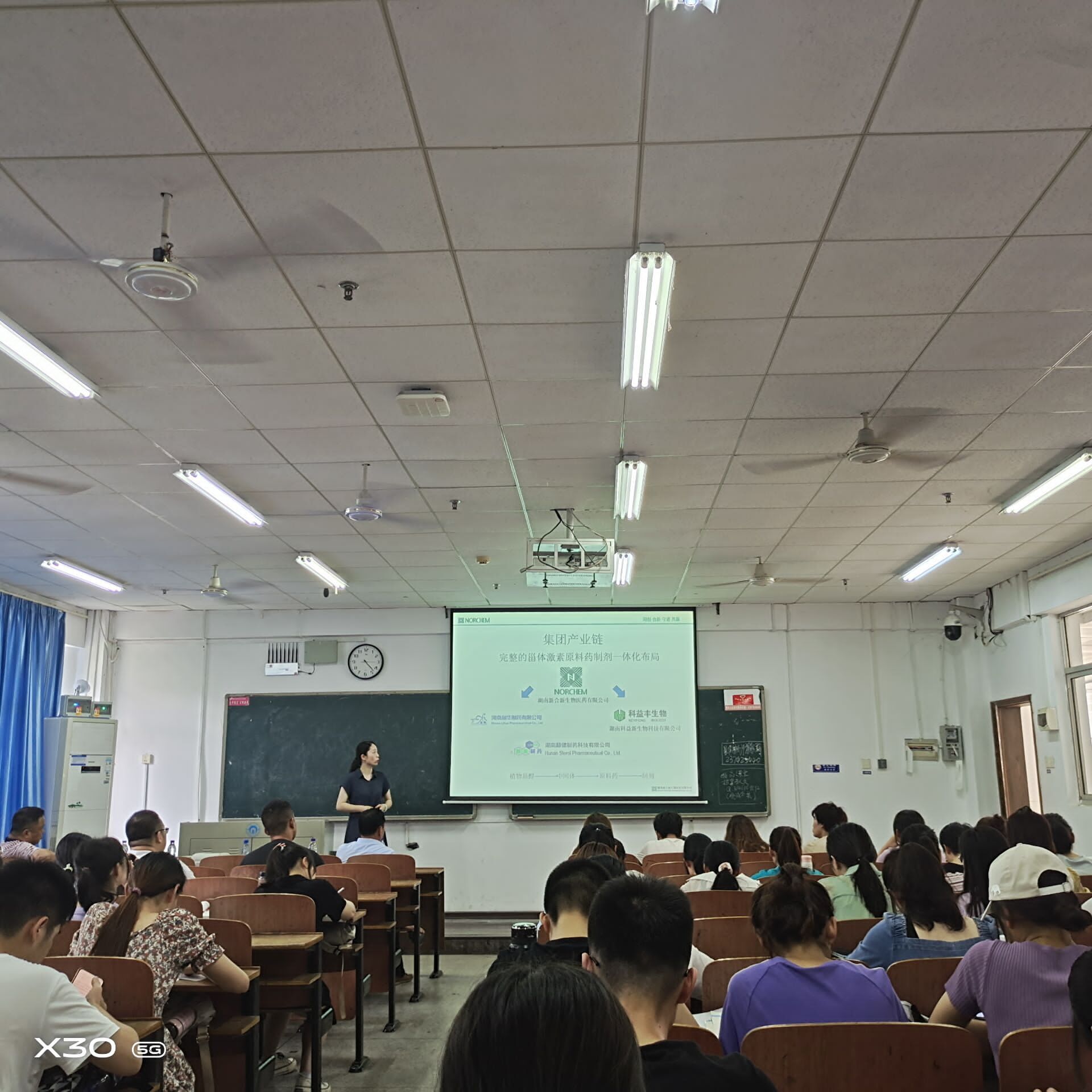 首先,黄薪谚简单介绍了企业发展,并详细讲解了新合新与校企合作的相关事宜。新合新自2018年开始,连续三年与beats365建立良好的实习生培养合作关系,从专业、职业、生活等各个方面为实习生提供指导和帮助。同时,新合新不断优化实习生专业培养课程及激励机制,为老员工个人成长和职业发展提供了良好的平台。她也介绍新合新有研发各技术岗、基地技术岗、基地生产储备干部等岗位需要招募实习生,希望各热爱医药行业、有责任心、有上进心的同学踊跃报名。