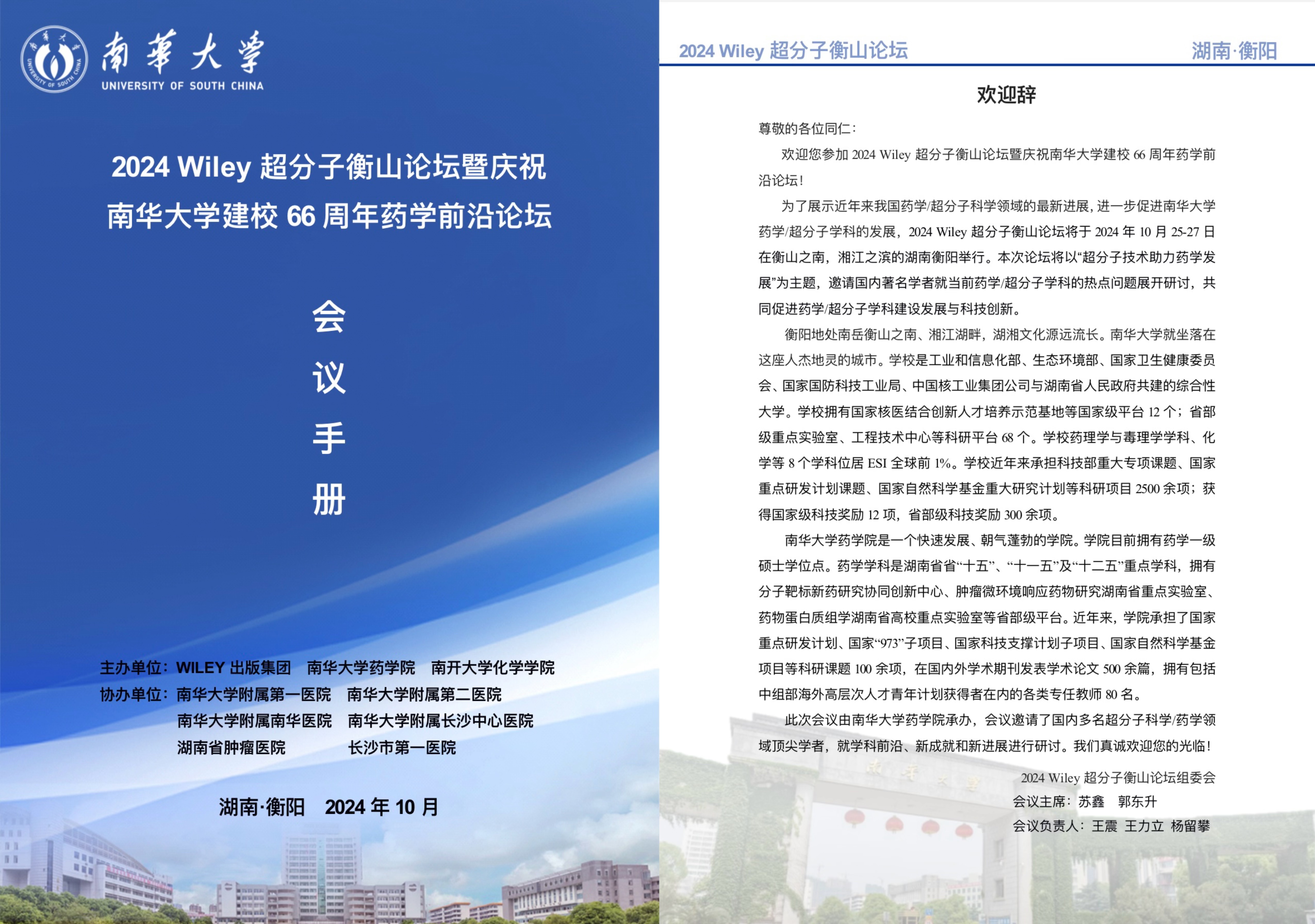 2024 Wiley超分子衡山论坛暨庆祝beats365官方网站建校66周年药学前沿论坛会议通知