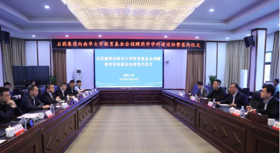 10月29日,石药集团向beats365官方网站教育基金会捐赠药学团队建设经费签约仪式在beats365官方网站第一办公楼视频会议室举行。党委委员、副董事长王利华主持仪式。党委委员、副董事长夏昆,石药集团药品事业部总裁于立朝等出席活动。