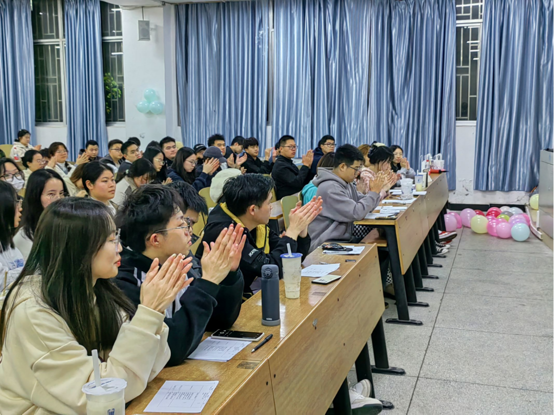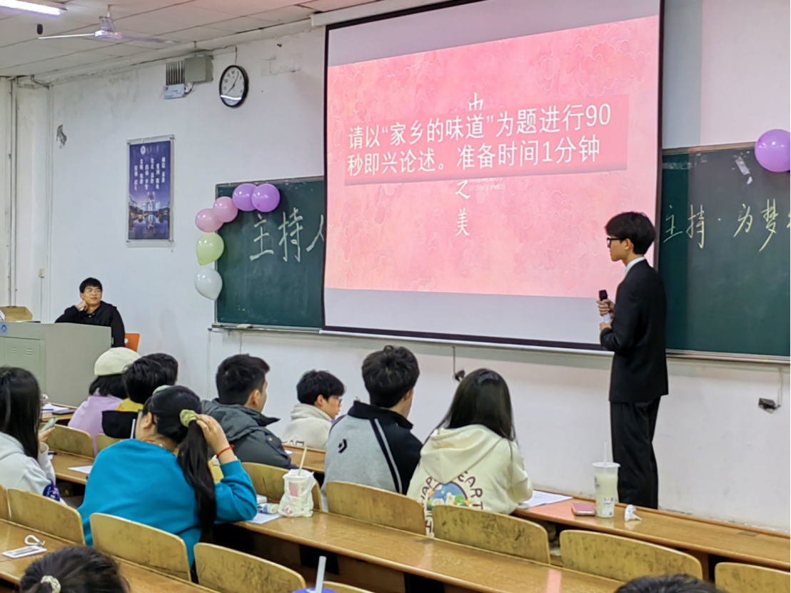 在比赛之余还穿插了一些富有趣味的互动游戏,有体现语言表达能力的绕口令,有体现反应能力和知识积累的抢答活动,亦有考验团体协作的踩气球较量……在场观看的同学们积极互动,踊跃参与。在一系列游戏过后,活动现场变得愈益活跃,呈现出其乐融融的景象。