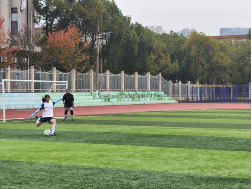 女足决赛随着裁判员的哨声中正式打响,药学公卫联队相互配合,行动默契,助跑、传球、击球、射门!精彩的进球惹得场边观众一片叫好。忽然落下的雨滴没有让球员们退缩,反而激发了她们的热情,最终以5:1的比分拿下冠军!
