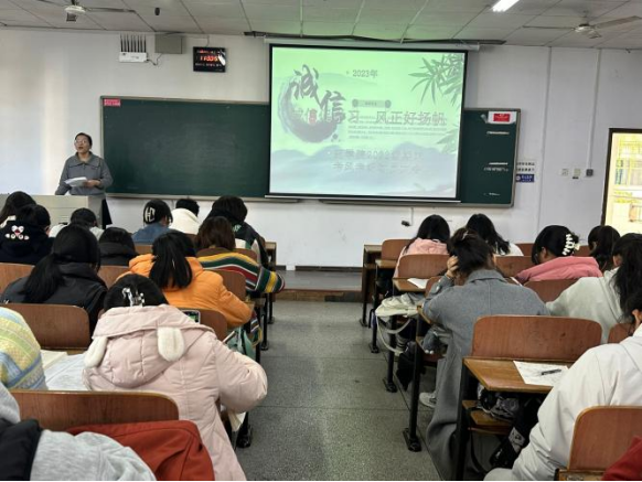 本次考风考纪动员大会的开展,向同学们传达了相关考试纪律,引导员工严格遵守各项规章制度,树立优良学风。全院班级会后举办主题班会,全面传达此次会议精神。