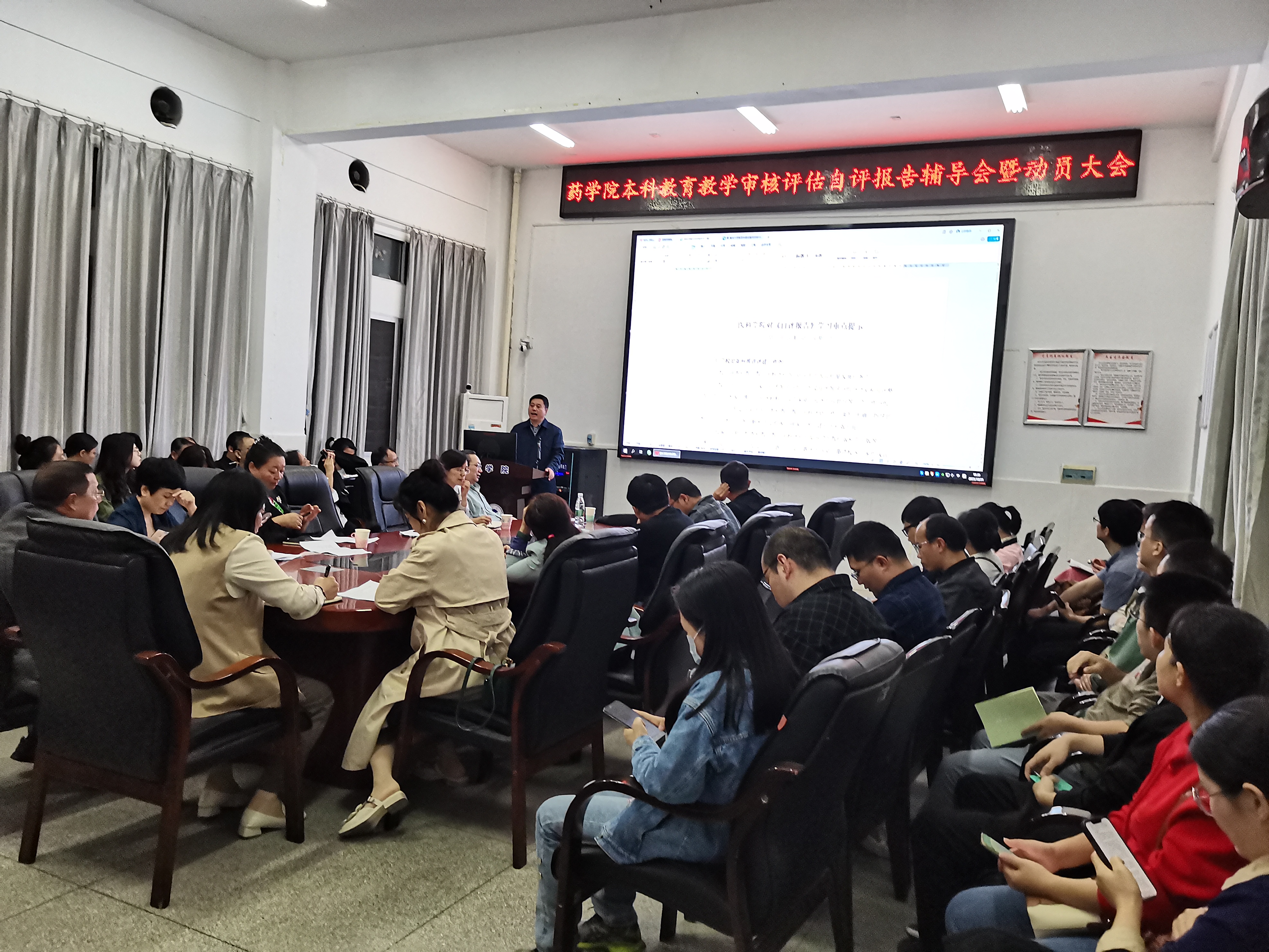 10月31日晚上7:30,我院在药学楼B101会议室召开新一轮本科公司产品审核评估自评报告辅导会暨动员大会。beats365经理喻翠云、党委书记袁中华、副书记陈健平、副经理易岚、副经理王力立以及公司全体教职员工参加了此次动员大会,会议由公司党委书记袁中华主持。